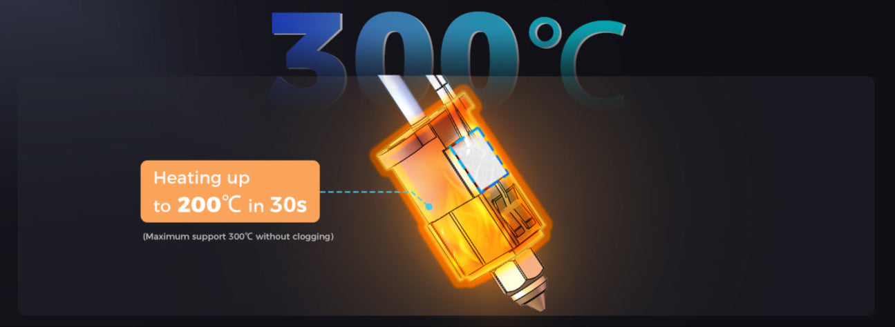 T300 reduziert die Aufheizzeit im Vergleich zu anderen 3D-Druckern um 70 %.