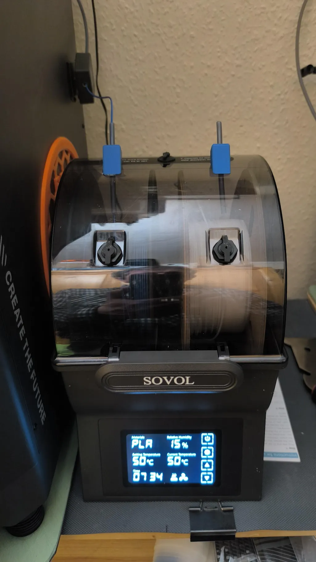 Suszarka do filamentów SH02 utrzymuje optymalną temperaturę i wilgotność poprzez podgrzewanie i uszczelnianie środowiska, dzięki czemu filament pozostaje suchy i gotowy do stałej wydajności drukowania 3D.