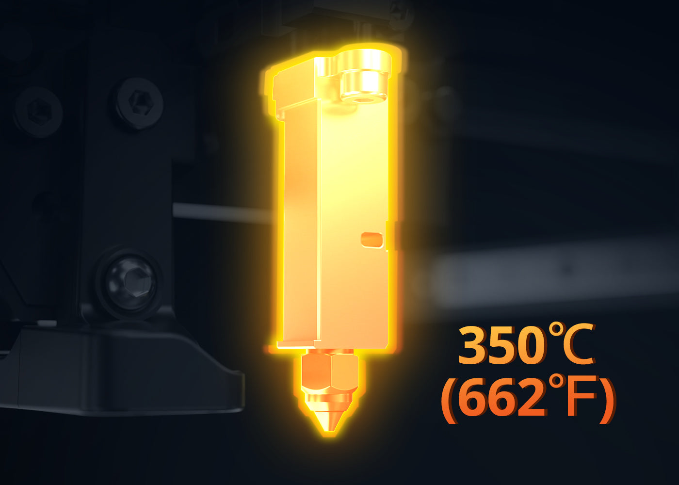 Reach up to 350°C with ease—perfectly handling PA, PC, and other high-performance materials for your most ambitious projects.
